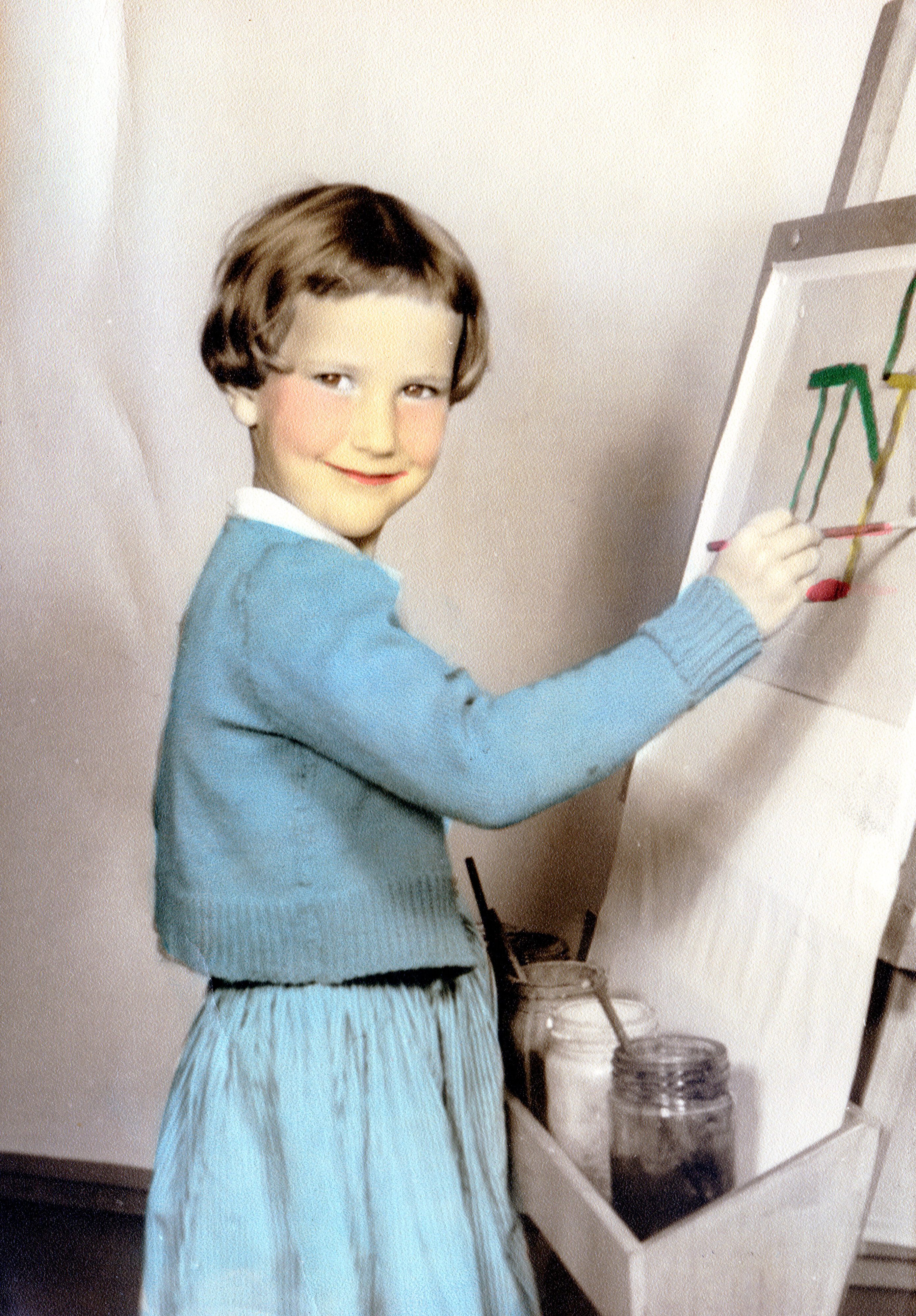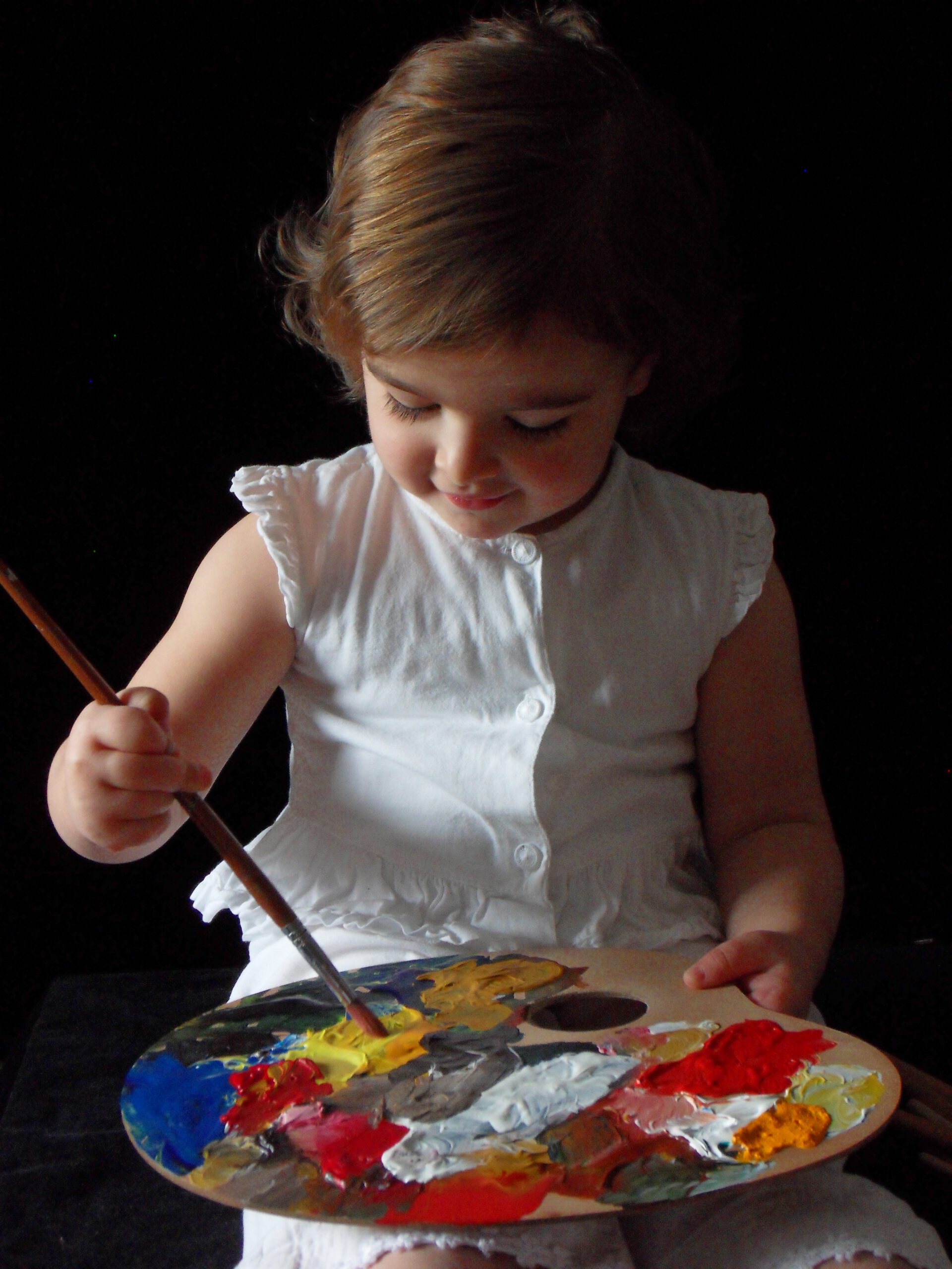 Hanneke is als zeer betrokken oma wel druk geweest om haar kleinkinderen wat creativiteit bij te brengen. Hieronder een mooi voorbeeld van Marit die een introductie krijgt in het schilderen.