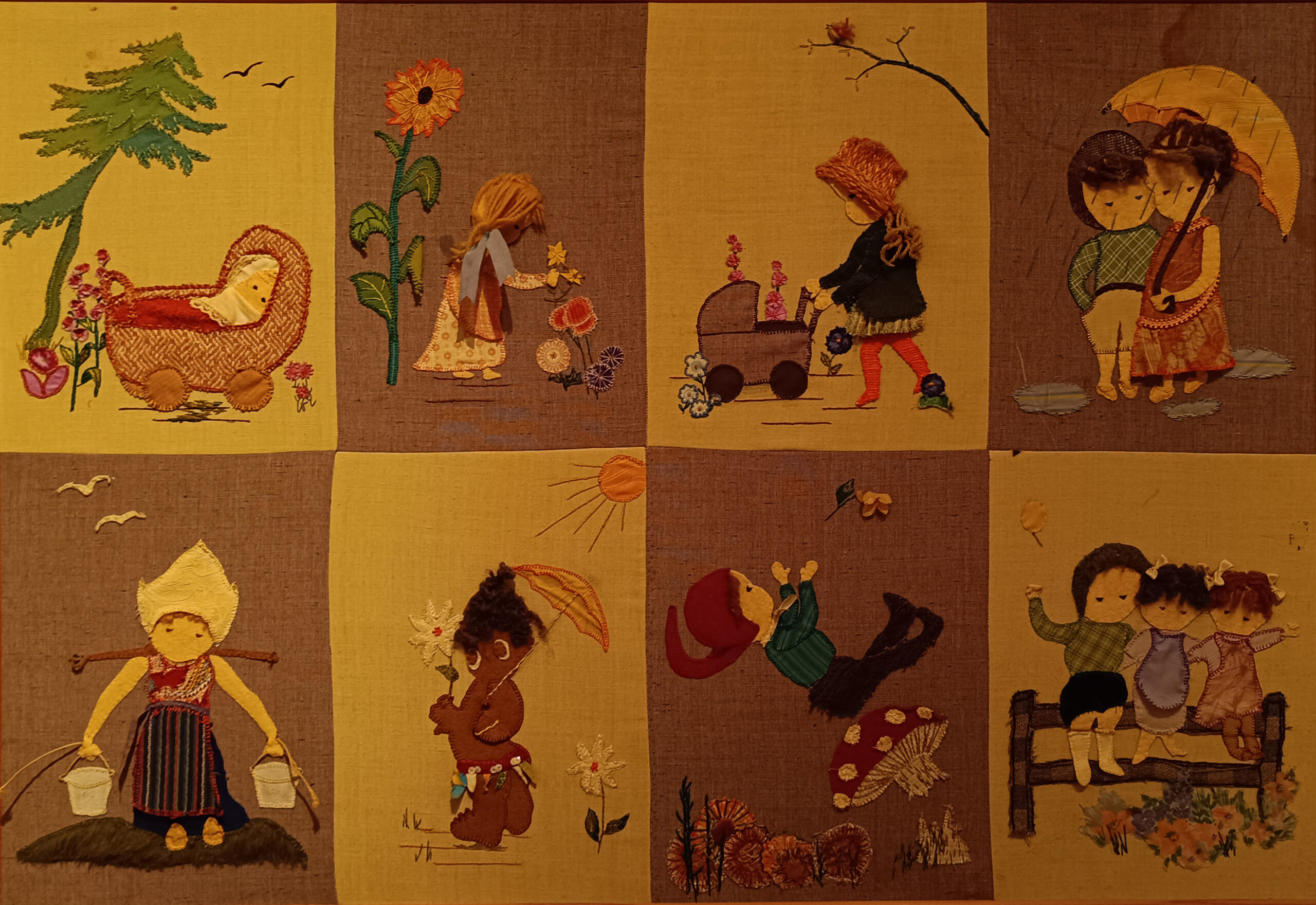 Dat Hanneke van jongs afaan al creatief was en interesse had in kunst komt niet van vreemden. Hanneke’s oma schilderde niet onverdienstelijk. Hieronder een schilderij van haar. Hanneke’s moeder schilderde ook, was fotografe en heeft onderstaande wandkleed gemaakt voor haar kleinkinderen.